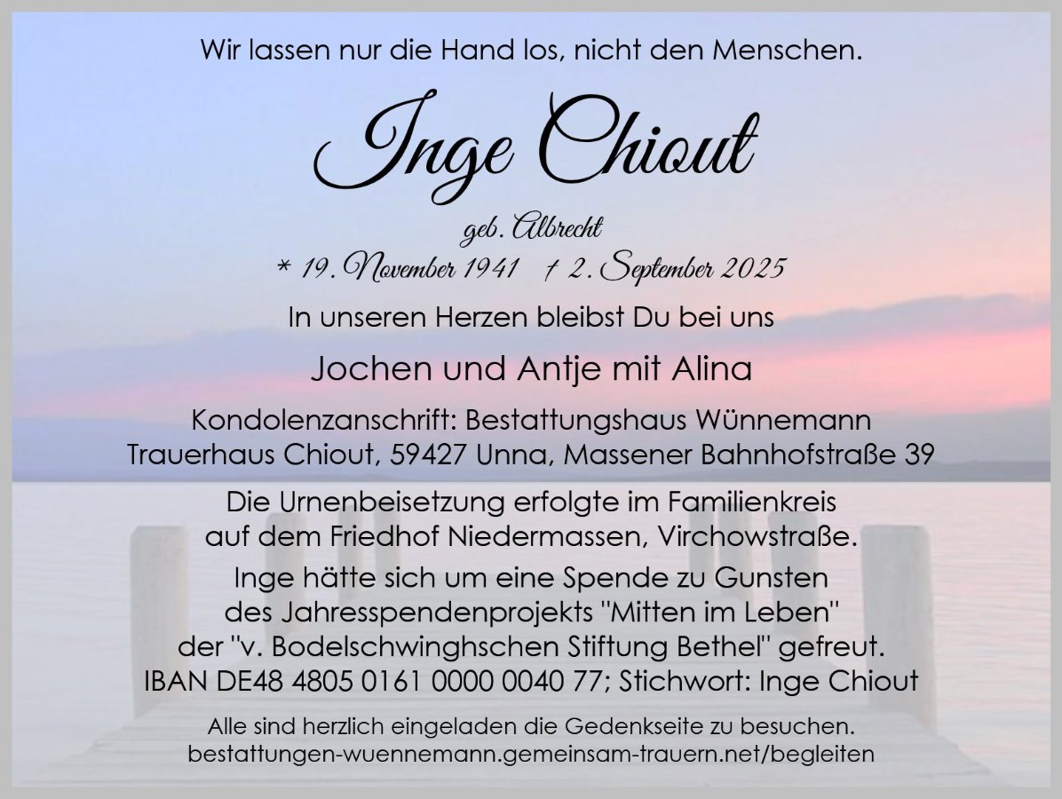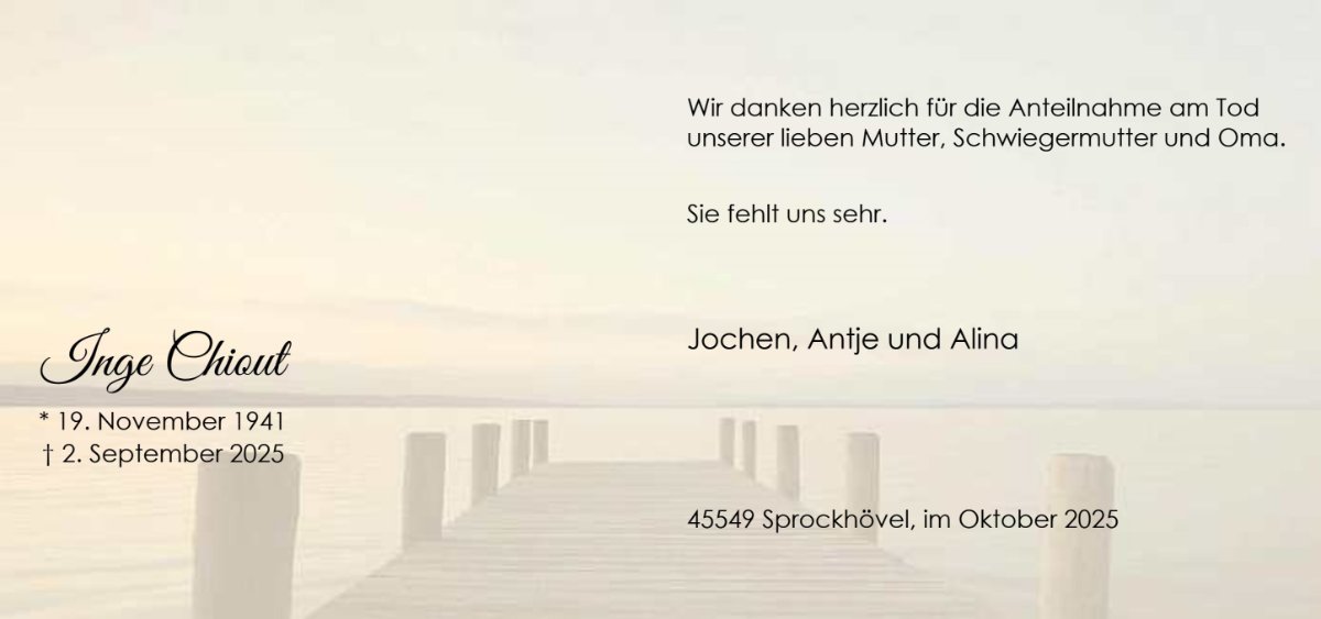 Hallo, den Hinterbliebenen der Familie meiner Klassenlehrerin Inge Chiout ....!